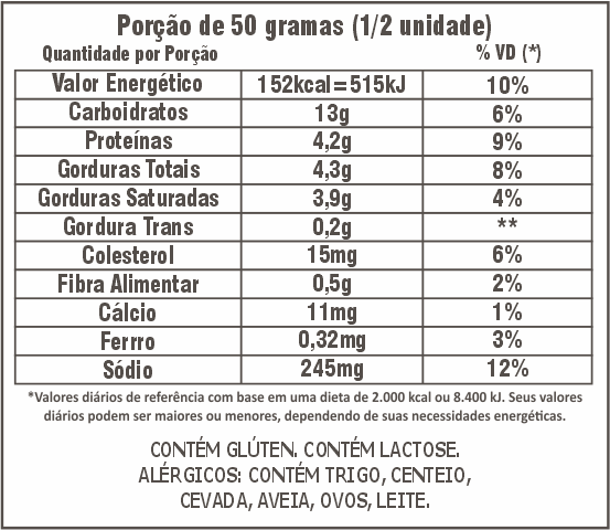 Farinha de trigo, apresuntado, mussarela, requeijão,